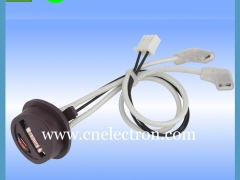 温度传感器是将高精度、高可靠的NTC热敏电阻器与PVC导线、铁氟龙导线等导线连接,用绝缘、导热、防水材料封装成所需要的形状,便于安装与远距离测控温.